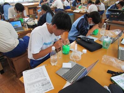 理科では、微生物の働きについて、実験結果をもとに考察しました。グループごとに意見を出し合い、比較検討しながらまとめていきました。