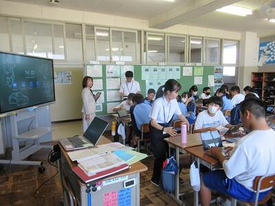 道徳では、「人と分かり合うために大切なことは何か」について、考えました。グループごとに、それぞれの生徒が考えたことを発表し合いながら、問いに向き合い、意見を交換させながら考えることができました。