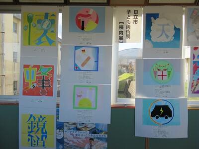 芸術の秋です。生徒が授業の中で制作した作品の中でから数点を選び、掲示しています。