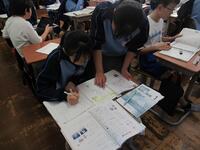 税務署職員を講師にお迎えし、租税教室を行いました。初めに税金のない世界を描いた映像を視聴しました。その後、等しく税を徴収するということについて考えました。収入の異なる人たちから、誰もが納得いく等しさを生み出すことは大変です。税の苦労を知ることで、税を身近に感じることができるようになりました。