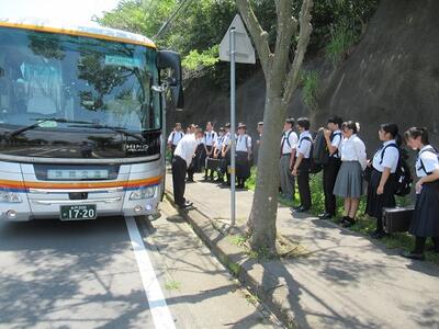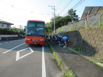 続いては、吹奏楽部です。吹奏楽コンクール県北地区大会に向けて出発しました。演奏順が午後ということもあり、学校で少し練習し、楽器を積み込みも行いました。こちらも練習の成果を発揮し、素晴らしい音色を響かせてほしいと思います。