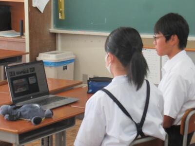 オンライン会議を利用し、生徒会交流会を行いました。日立市内の他の中学校の生徒会行事や活動については、知りたくてもなかなか知れないところです。そこで、どんなことをしているのかを発表し合い、その後、質疑応答を行いました。よい交流会になりました。