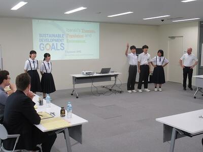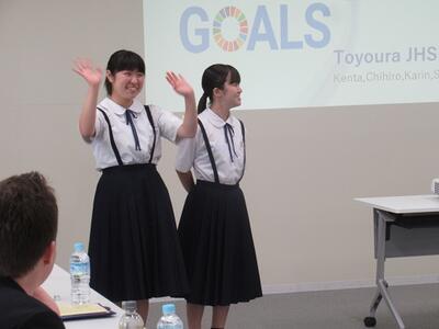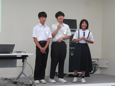 「茨城県をよりよい県にするために、SDGsの視点で自分たちができることを提案しよう!」というテーマについて、放課後等を利用して練習してきたことを、英語で発表しました。