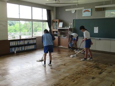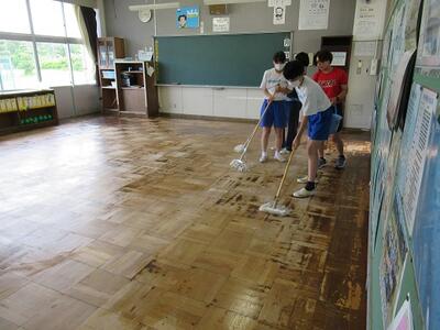 環境委員の生徒が教室のワックスがけを行いました。4月から7月までの間お世話になった教室に、感謝の気持ちを込めて行ったので、とてもキレイになりました。