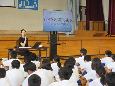 終業式の前に、日立総合病院の助産師さんをお招きして、「いのちの教室」を行いました。男女の心身の特質を知り、互いに相手を理解、尊重できるようになることをねらいとして実施しました。真剣に講話を聴いたり、体験活動に取り組んだりしていました。