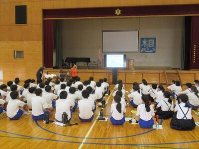 4校時に終業式を行いました。1学期を振り返っての作文発表や校長先生のお話を聞きました。