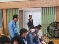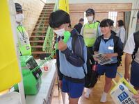 吹奏楽部の生徒が豊浦学区まちづくり推進会・日立市主催の自主防災訓練に参加しました。部活動を少し早めに切り上げ、集団で避難しました。避難先の豊浦小学校では、水戸地方気象台地域防災官の方から大雨に備えるためにすることを教えていただきました。最後に、避難所のテントや災害電話の体験をしました。貴重な体験になりました。