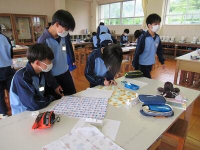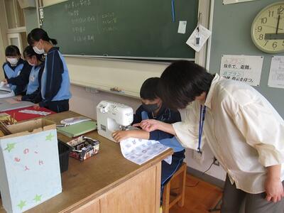 家庭科では、エコバックや巾着など、身近に使える便利なものを作りました。ミシンやアイロンも正しく使うことができました。手際もよく「さすが」の一言です。