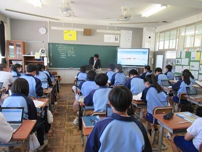 社会では、タブレットを使って考えをまとめ、発表しました。
