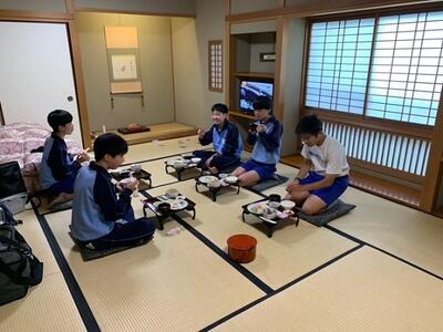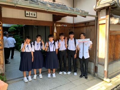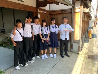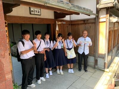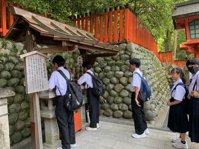 第2日目は旅館から班別でタクシーに乗り、事前に計画した見学地を回りました。お土産もたくさん買えたようです。気温が高く、各班とも、とても疲れたようです。