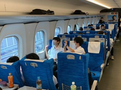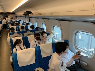 新幹線に乗車しました。初めての生徒もいるようで、乗り心地に驚いたり、見える景色に感動したりしていました。