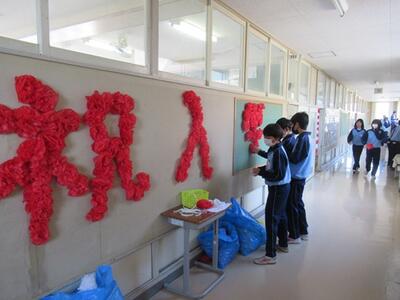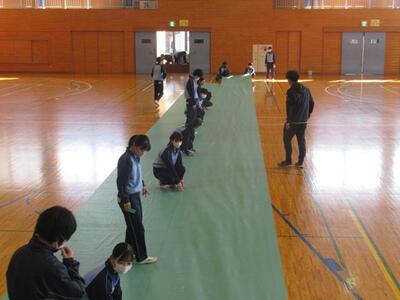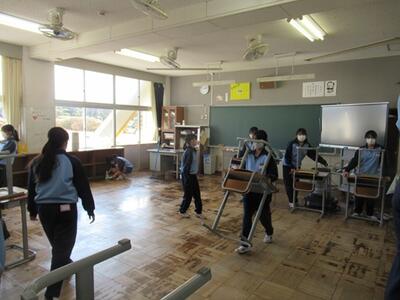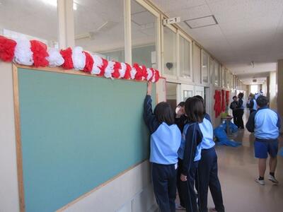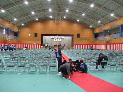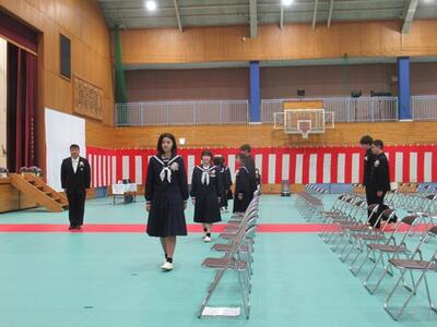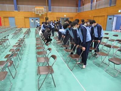 卒業式の準備を行いました。1年生は教室を、2年生は体育館を行いました。どちらの学年もお世話になった3年生への感謝の気持ちを込めて準備していました。素晴らしい会場ができました。