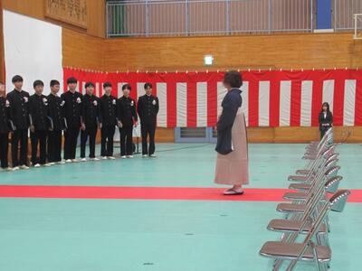着任式、始業式のあとに入学式を行いました。新2、3年生が心を込めて作成した会場で、緊張の中にも温かさのある雰囲気で式を行うことができました。