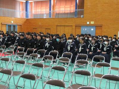 1年間の成長を確かめ、喜び、祝いながら修了式を行いました。生徒の作文、学校長の式辞にはそういった内容がつづられていました。