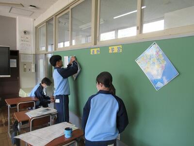 県立高校を受検しなかった生徒は、受検している生徒の分も頑張ろうと、教室の片づけを行いました。県立高校の受検が終わると、いよいよ卒業です。掲示物が外された教室は寂しげにうつりました。