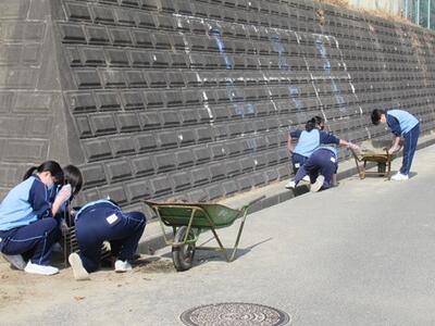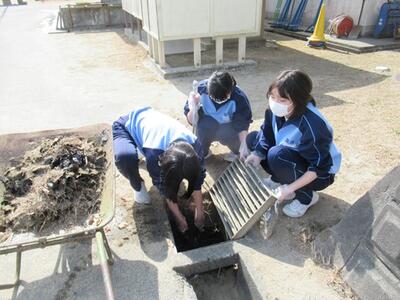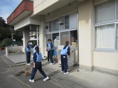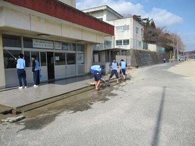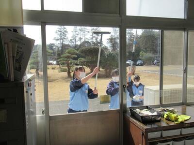 3年生が感謝の気持ちを込めて、校舎をきれいにしてくれました。普段は掃除しない窓の外側や側溝などが見違えるほどきれいになりました。3年間お世話になった感謝の気持ちが形となって表れていました。