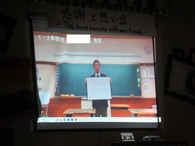 ビデオレターも届きました。昨年まで担任してくださり、今年度異動された先生からです。そのあと思い出のスライドショーを見て3年間を振り返りました。