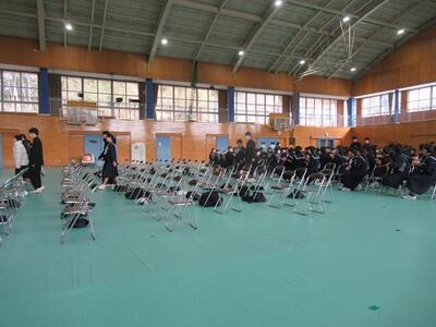 3月3日(月)に予定していた3年生の校外学習は、荒天のため中止になりました。その代替として、スポーツレクリエーションを行いました。部活動を引退して時間がたったり、受験勉強で運動不足になりがちだったりしたところでの運動でしたが、けがなく、いい汗を流していました。