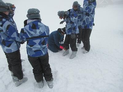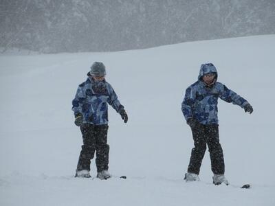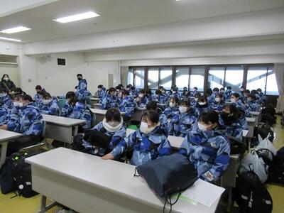 宿泊学習2日目は、雪の大歓迎を受けてしまいました。高速道路が通行止めになるということで、急遽、日程変更をして対応しました。施設の方も「こんな大雪は見たことがない。」と話していました。