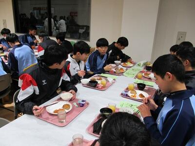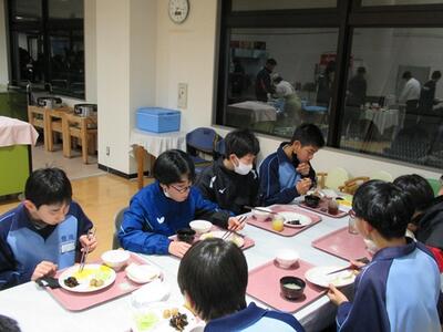 昼食はスキー場の予定でしたが、スキー場に行けません。急遽、宿泊施設の方々がカレーを作ってくださいました。