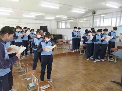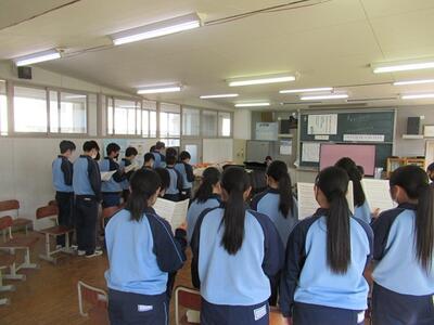 3年生の音楽科では、合唱を行っています。文化祭のような、きれいな歌声が校舎を包んでいました。まずは楽譜に歌のメモを取り、そのあとメモしたことを歌声にして表現することができました。
