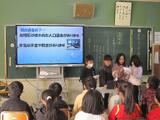 1年生の理科では、地震について学習しています。説明を受けながら、問題を解いていました。