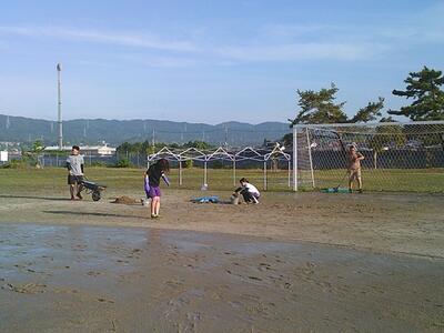 準備も協力してできました。日陰の少ないグラウンドですので、熱中症対策のためにもテントを設営しています。