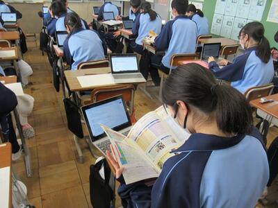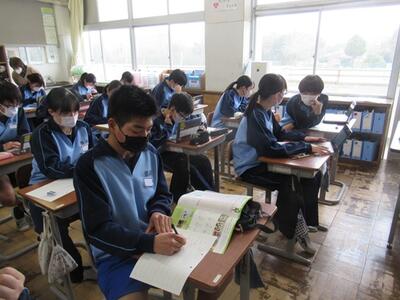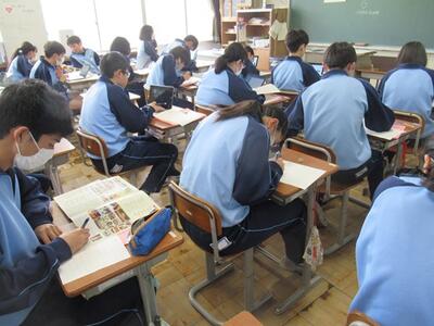 2年生は、総合的な学習の時間に高校調べをしました。高校のパンフレットやwebページを見ながら、高校の所在地や特色を調べ、まとめていました。1年後をイメージしながら、熱心に活動していました。