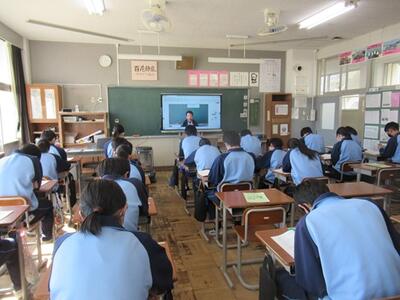 2年生は、2月に行われる宿泊学習に向けてしおりの確認をしました。体調万全で臨めるように、オンラインで説明を聞き、感染症拡大防止に努めました。メモを取りながら真剣に聞いており、宿泊学習の大成功を予感させられました。