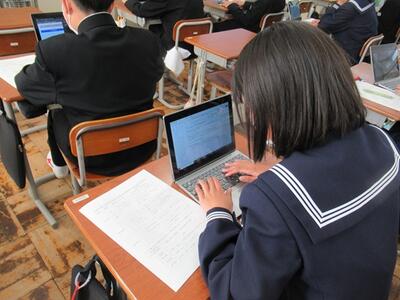 英語科では、英訳に挑戦しました。日本語で言われたことを、グループで相談しながら英語に直しました。