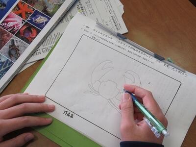 1年生は総合的な学習の時間に、職業調べをしています。本を使ったり、インターネットを使ったりしながら、気になる職業について調べ、レポートにまとめています。2年生になると職場体験学習があります。その先の進路を考えるうえでも、今、職業について知ることはとても大切です。