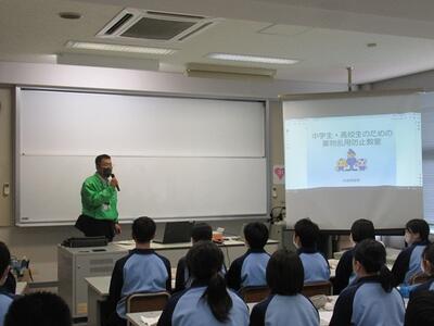 2年生を対象に、インフルエンザ等感染症流行のため学年閉鎖をしていて延期になっていた、薬物乱用防止教室を実施しました。日立警察署のスクールサポーターを講師にお招きして、薬物の危険性について教えていただきました。