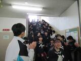 3年生を送る会の前に、3年生は校友会の入会式を行いました。会長から校友会の歴史や活動についての話を伺いました。「卒業」の2文字がどんどん大きくなっています。