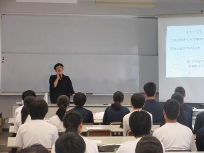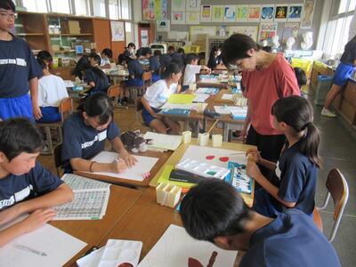 1年生の美術科では、文字と絵を組み合わせてデザインしました。より伝わる文字になっており、生徒の発想の豊かさに感心させられました。