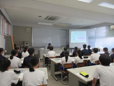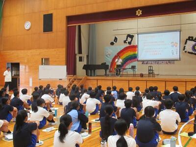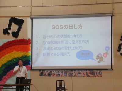 スクールカウンセラーの先生を講師として、1年生を対象にSOSの出し方について学習しました。真剣に話を聞くことができました。