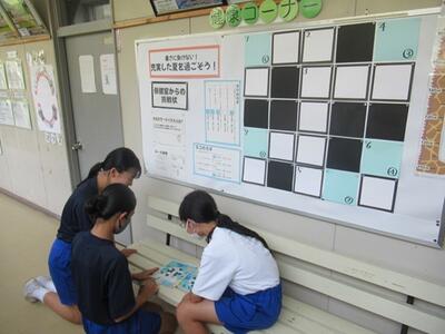 保健室前の掲示物が更新されました。昼休みに挑戦している生徒がいます。