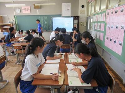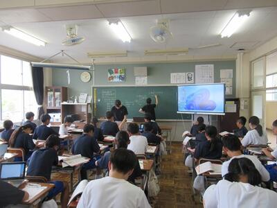 1年生の英語科では、教科書の内容を確認しながら、文法や単語を確認しました。