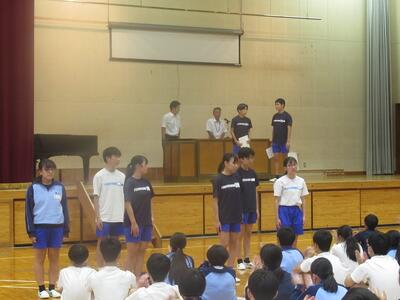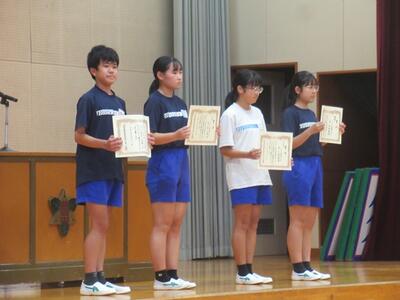 県北新人、夏休みに作成した作品の中に入賞したものがあったので賞状の伝達を行いました。素晴らしい態度で症状を受け取ることができました。