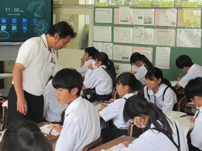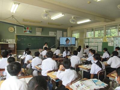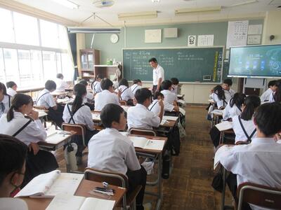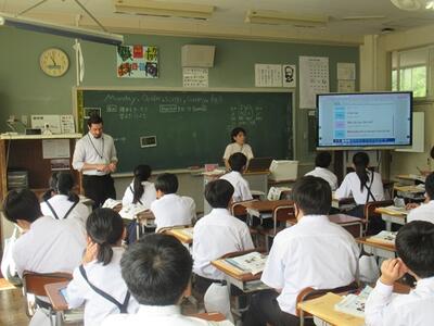 1年生の英語科では、whyを使った文について学習しました。ALTの範読に続いて音読して、リズムも身に付けていました。