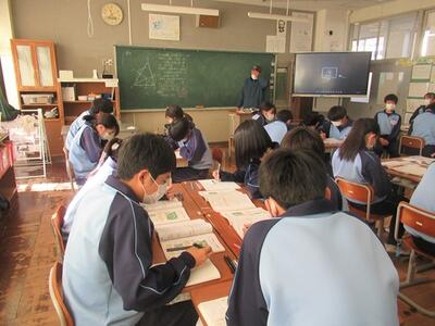 2年生の数学科では、図形の証明問題に取り組んでいます。グループで教え合いながら、考えました。