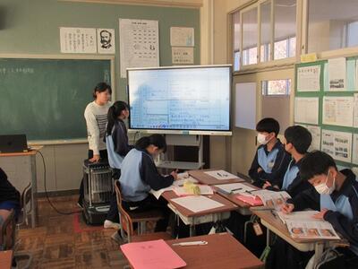 1年生の家庭科では、調理実習の計画を立てました。2学期には肉じゃがを作りました。今度は魚料理に挑戦します。一生懸命調べ、考えていました。