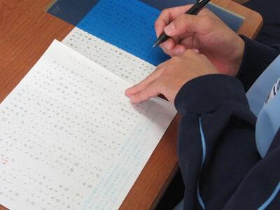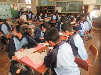 3年生の学活では、卒業文集の原稿を作成しました。3年間の思い出を懐かしく振り返りながら、書いていました。思い出がたくさんあるので、この用紙に収めるのが大変なようです。
