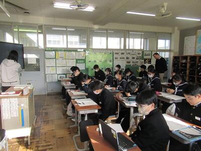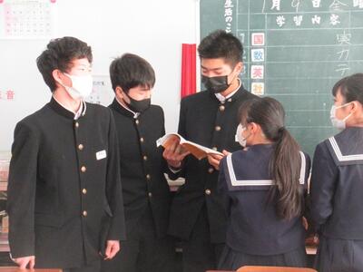3年生は、実力テストを行いました。来週からは私立高校の一般入試が始まります。本番を意識してテストを受けていました。写真は休み時間の様子です。
