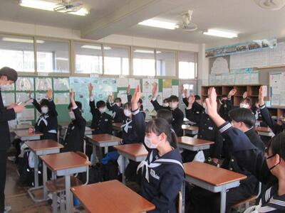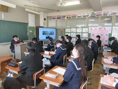 さらに今日は、オンラインを使って2つのクラスに同時に進路の連絡をしました。とても真剣に聞いています。