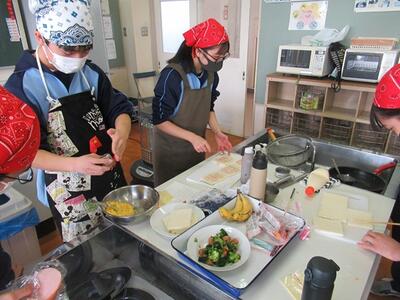 3年生の家庭科では、幼児のためのお弁当作りを行いました。幼児を想定しているので、かわいさ、素材の柔らかさ栄養バランスなど、たくさんの工夫をしていました。おいしくできたようです。