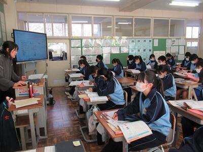学級・学年閉鎖や宿泊学習があり、全学級がなかなかそろいませんでしたが、今日は久しぶりにそろいました。学校内を歩いていても、活気が感じられます。やはりたくさんの生徒が登校してくれることは、うれしいことです。