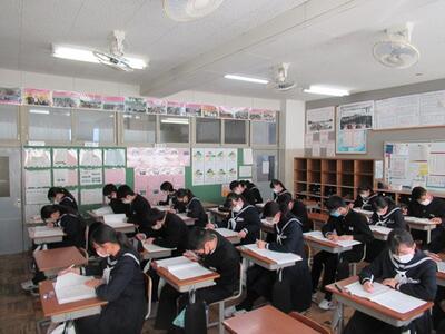 3年生の国語科では、テスト形式の練習問題を解いていました。受検までもう少しです。