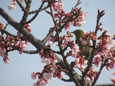 春の陽気に誘われて、梅の花も咲き始めました。その花にメジロがやってきました。豊浦の豊かな自然に心が和み、癒されました。