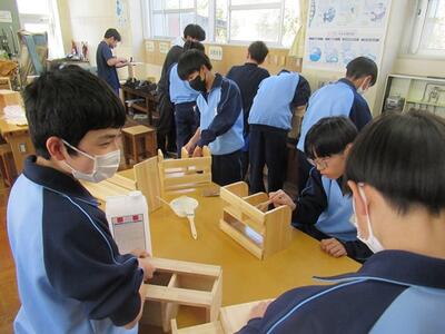 洗濯表示記号をチェック 投稿: 承認者 (03/12) カテゴリー: 授業の様子 1年生の家庭科では、教科書のコンテンツを利用し、学習した洗濯表示記号について、マルバツのクイズでチェックしました。クイズ形式なので、手軽に行うことができました。 1年生の技術科では、木製本立てやラックの製作をしています。作業の早い生徒はニスを塗るところまで進んでいました。 Tweet -