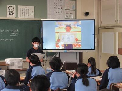 1年生の英語科では、一枚の写真をもとにスピーチを行いました。この1年間で、ずいぶん英語を話すことができるようになりました。質疑応答も英語で行い、立派でした。